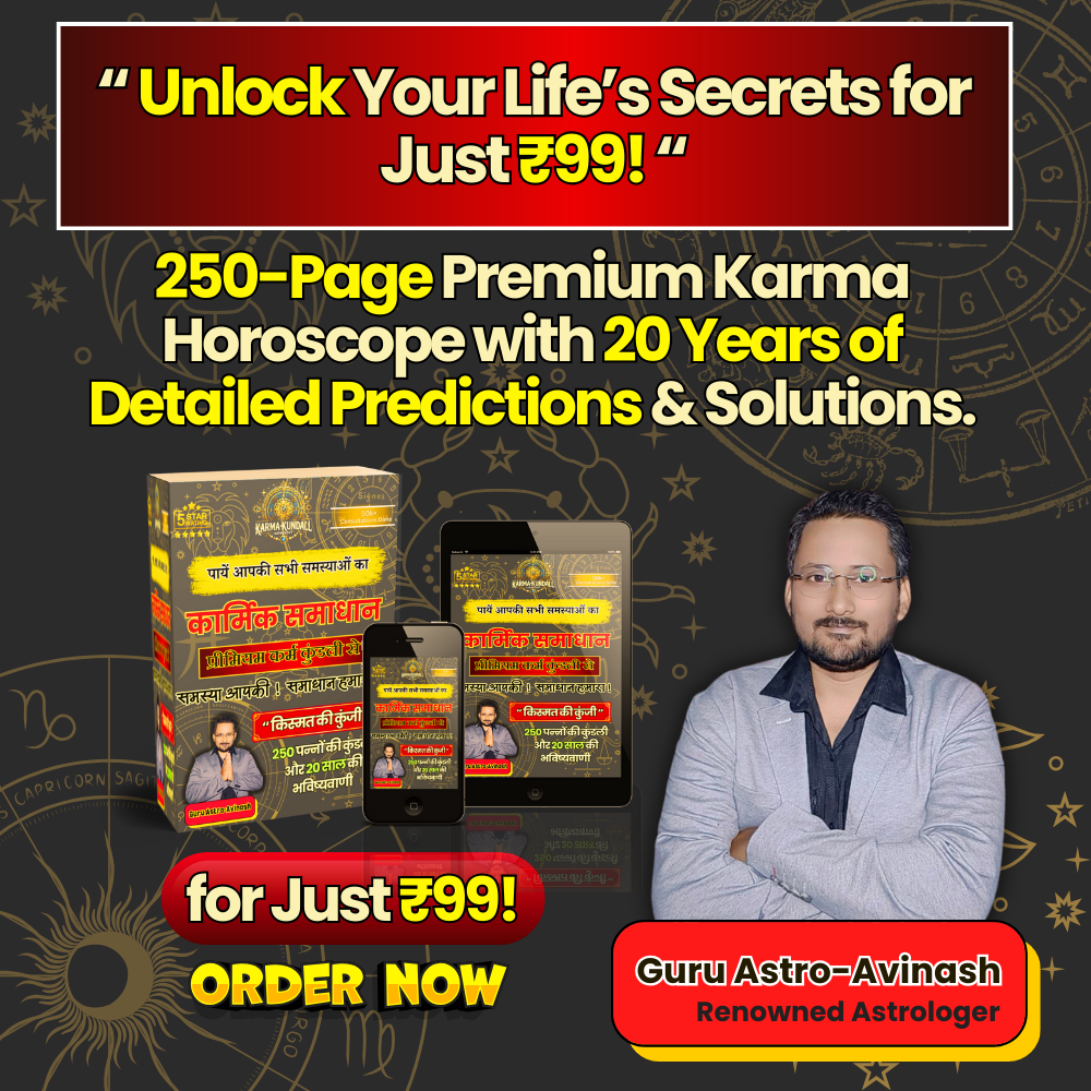 Please note: We regret to inform you that the delivery time for Premium Karma Kundali orders has been extended from 3 to 5 days. We sincerely appreciate your patience and understanding during this adjustment period. Our team is working hard to ensure timely and accurate delivery.